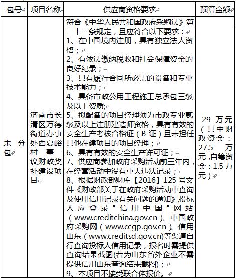 二、采購項目名稱:濟南市長清區(qū)萬德街道辦事處西夏峪村一事一議財政獎補