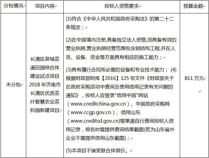 二、采購項(xiàng)目名稱:長(zhǎng)清區(qū)泉城茶道田園綜合體建設(shè)試點(diǎn)項(xiàng)目2018年濟(jì)南市長(zhǎng)清區(qū)優(yōu)質(zhì)茶葉智慧農(nóng)業(yè)茶科園新建項(xiàng)目