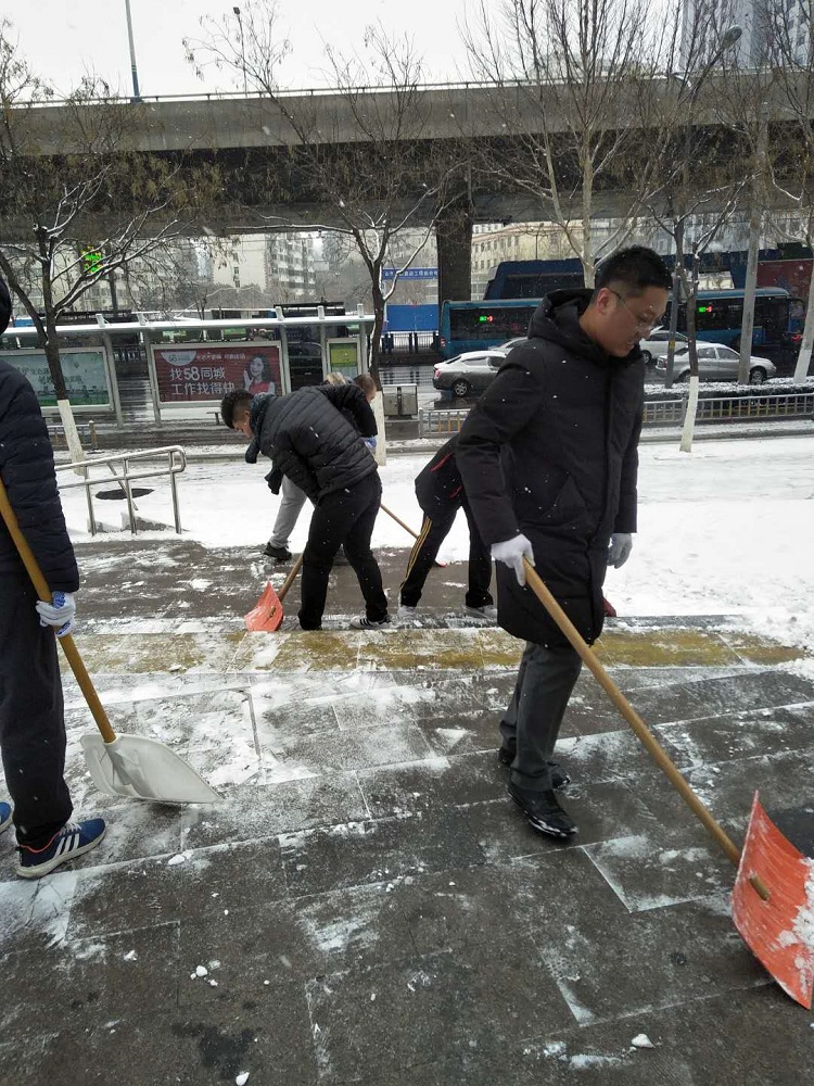 2019年2月14日濟(jì)南迎來(lái)了大家盼望已久的今冬第一場(chǎng)雪,大地銀裝素裹,分外妖嬈;但強(qiáng)降雪過(guò)后,公司所在的和瑞廣場(chǎng)路面被厚厚的積雪所覆蓋,給公司員工及前來(lái)上班的其他單位人員帶來(lái)諸多不便。為保障廣大員工和群眾能暢通出行,濟(jì)南分公司黨支部組織開展義務(wù)掃雪鏟冰的工作。黨支部張書記及公司領(lǐng)導(dǎo)帶頭揮锨鏟雪,廣大志愿來(lái)掃雪的黨員及同事們拿出掃帚、鐵锨等工具踴躍參加掃雪除冰活動(dòng),場(chǎng)面熱火朝天,充分展現(xiàn)了黨員的先鋒模范帶頭作用。從早上九點(diǎn)到十一點(diǎn),大家齊心協(xié)力掃清了廣場(chǎng)內(nèi)外的積雪,有效緩解了出行不便的狀況,為廣大群眾的安全出行帶來(lái)了便捷,在冬日嚴(yán)寒中傳遞了絲絲溫暖和一股股正能量。