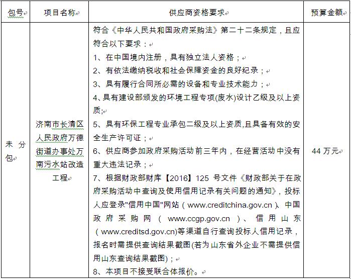 二、采購(gòu)項(xiàng)目名稱:濟(jì)南市長(zhǎng)清區(qū)人民政府萬(wàn)德街道辦事處萬(wàn)南污水站改造工程
