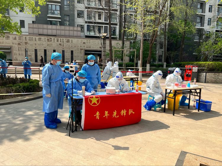 “社區(qū)呼叫,我們報(bào)到”。在防范區(qū)核酸檢測(cè)的前一天,山東建工集團(tuán)、山東省國際招標(biāo)有限公司、齊魯銀行歷下支行、濟(jì)南靳武體育文化發(fā)展有限公司等單位,第一時(shí)間來到社區(qū),參與物資籌備、門崗執(zhí)勤、上門宣傳等工作。同時(shí),為了盡量減少對(duì)群眾出行帶來的不便,他們與社區(qū)工作人員一起連夜搭建采樣點(diǎn)。雖然春寒料峭,大風(fēng)驟起,但是他們?nèi)匀涣x無反顧,一往無前。風(fēng)中,他們的身影讓人眼眶溫?zé)幔念^一暖。
