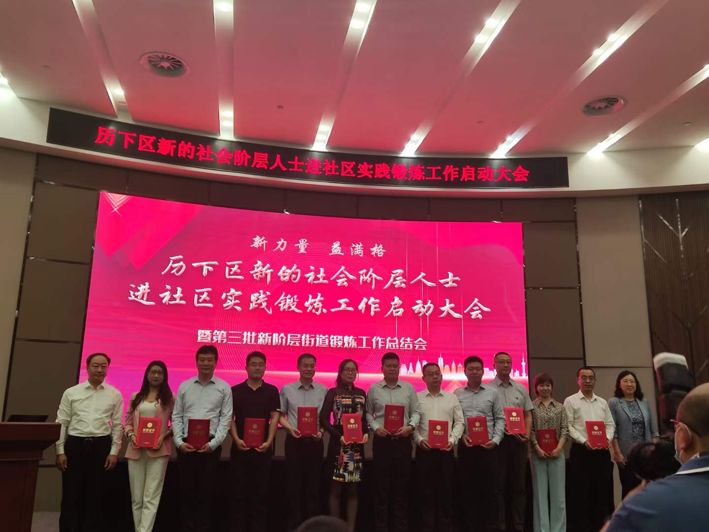 會(huì)上,歷下區(qū)第三批街道鍛煉人員代表進(jìn)行了工作展示,與會(huì)領(lǐng)導(dǎo)為優(yōu)秀人員頒發(fā)了榮譽(yù)證書(shū),宣讀了關(guān)于開(kāi)展“新力量·益滿(mǎn)格”新的社會(huì)階層人士進(jìn)社區(qū)實(shí)踐鍛煉工作的實(shí)施方案及新的社會(huì)階層實(shí)踐鍛煉工作室主任名單,新的社會(huì)階層人士實(shí)踐鍛煉工作室主任代表和街道分管領(lǐng)導(dǎo)代表做了交流發(fā)言。