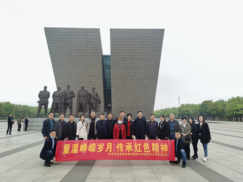 4月25日,安慶市房屋置業(yè)融資擔(dān)保公司黨支部組織全體黨員到渡江戰(zhàn)役紀(jì)念館,把黨史學(xué)習(xí)教育的課堂搬到這里,開(kāi)展“重溫崢嶸歲月、傳承紅色精神”主題黨日活動(dòng)。渡江戰(zhàn)役紀(jì)念館坐落在巢湖之濱,以基本展陳《百萬(wàn)雄師過(guò)大江》為主線,共展出珍貴歷史照片、文物、油畫(huà)、雕塑2500余件,再現(xiàn)了革命艱難歷程、軍民團(tuán)結(jié)一心的恢宏篇章。通過(guò)一件件歷史文物、一幅幅革命影像,為我們?cè)佻F(xiàn)了軍民奮勇渡江作戰(zhàn)的壯闊畫(huà)面。活動(dòng)期間,再次重溫了入黨誓詞,部分黨員還分別進(jìn)行了戰(zhàn)役介紹、戰(zhàn)役中的小故事、觀后感活動(dòng)。不忘歷史,開(kāi)創(chuàng)未來(lái),通過(guò)追尋渡江戰(zhàn)役英烈們的足跡,牢記革命先烈浴血奮戰(zhàn)、不怕?tīng)奚臍v史,感悟初心使命,汲取奮斗力量,為推進(jìn)置業(yè)擔(dān)保國(guó)有企業(yè)改革發(fā)展開(kāi)拓新局面。活動(dòng)還邀請(qǐng)了局紀(jì)檢組、機(jī)關(guān)黨委、企指科和股權(quán)單位相關(guān)負(fù)責(zé)人參加。
